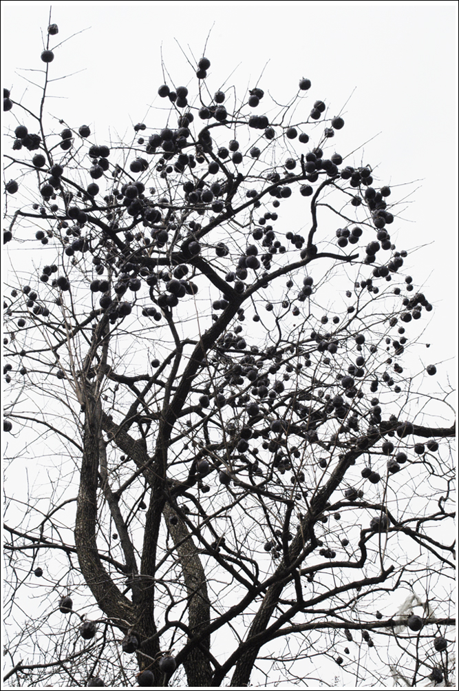 저렇게 잘 여문 감을 딸 사람이 없어 검게 마르고 얼어버린 감들이 나무를 지키고 있다.