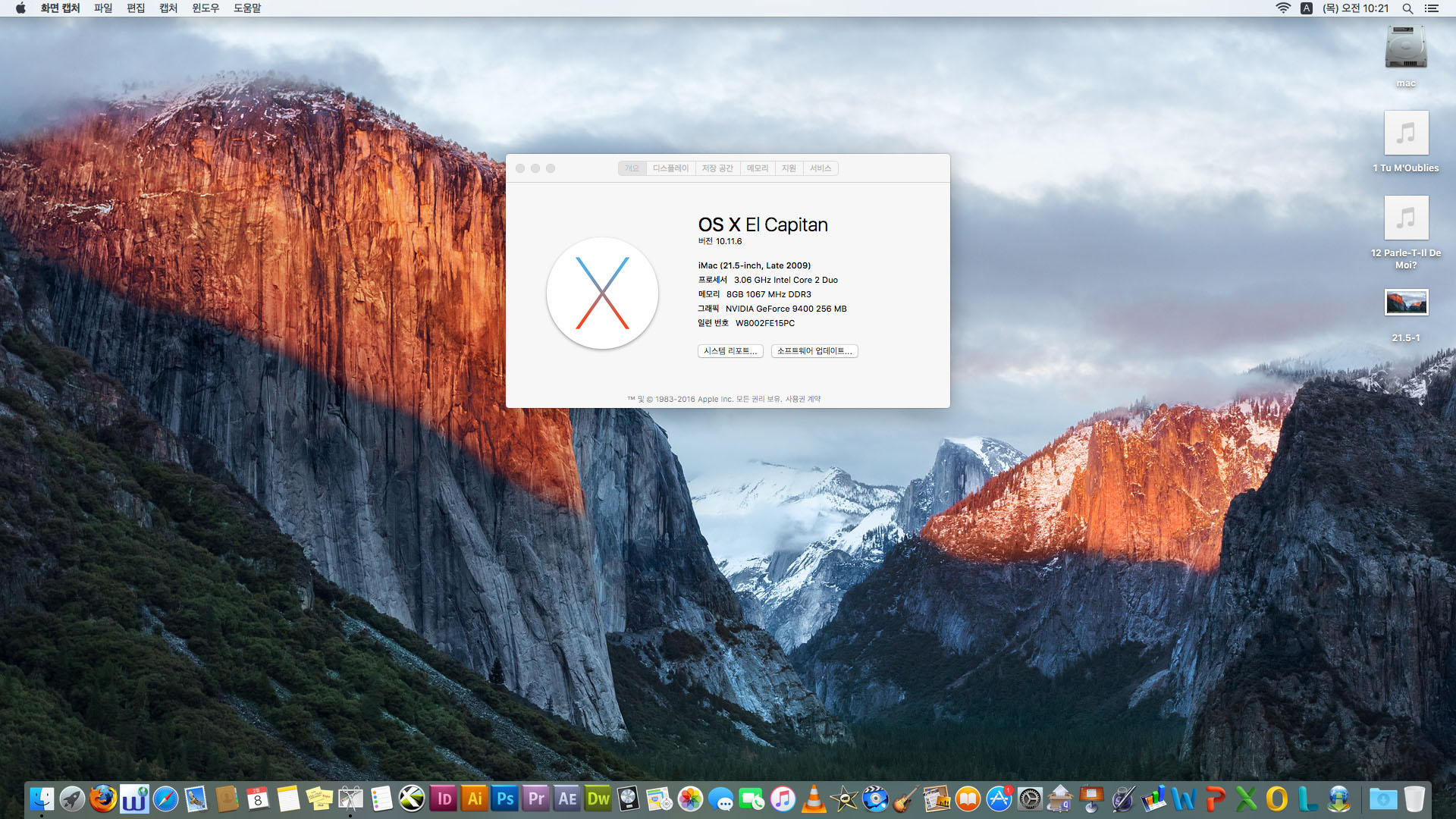 [판매완료] 바로 사용가능한 아이맥 2009 Late 21.5인치 3.06GHz