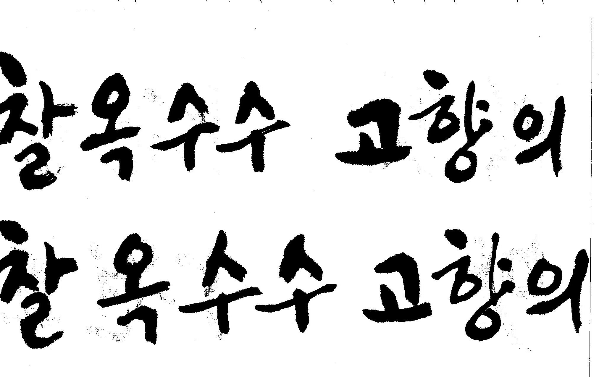 캘리고수님.. 캘리 부탁드립니다. 김철호 일반 1 10405 2008.10.31 15:44 > > 강원도 > 찰옥수수 > 고향의 맛 > > 이상의 문구 입니다. > 캘리 고수님들 시간되시면 도움 부탁드립니다.. > 유용하게 쓰시길 , 스캔이 깨끗하지 못해서 수고 좀 하셔야 겠네요.. "맛"이 라는 글자가 잘 않나와서 따로 올립니다.