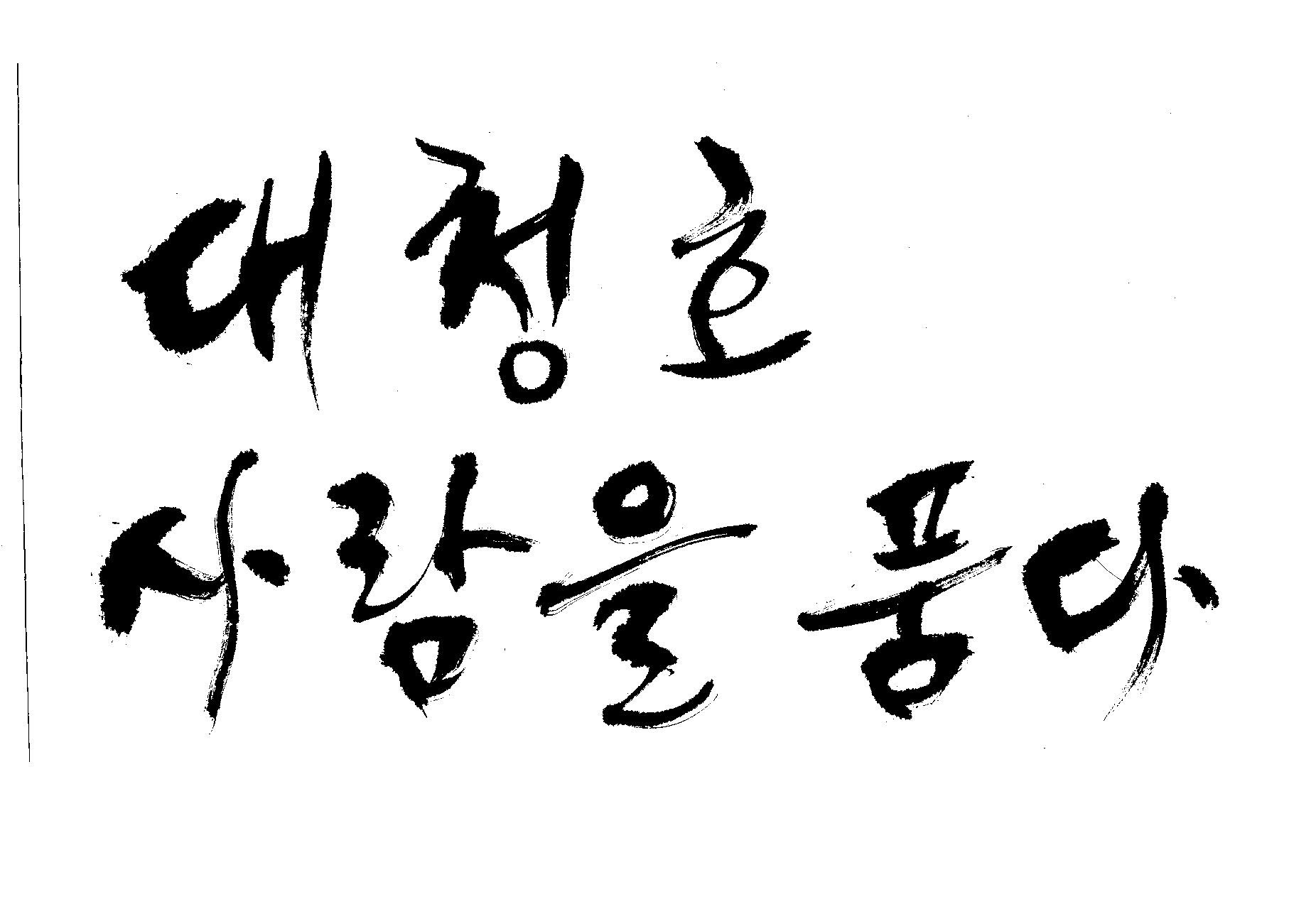 캘리 부탁드려요 김철호 일반 0 5470 2009.06.03 12:12 > > > > > 대청호 > > 사람을 품다 > > > > - 방송용 다큐멘터리에 들어갈겁니다 > > 죄송합니다만 빨리 부탁드려요 > > 두줄로 가운데 맞춤으로 써주세요 - > > > > 줄맞춤은 알아서... >